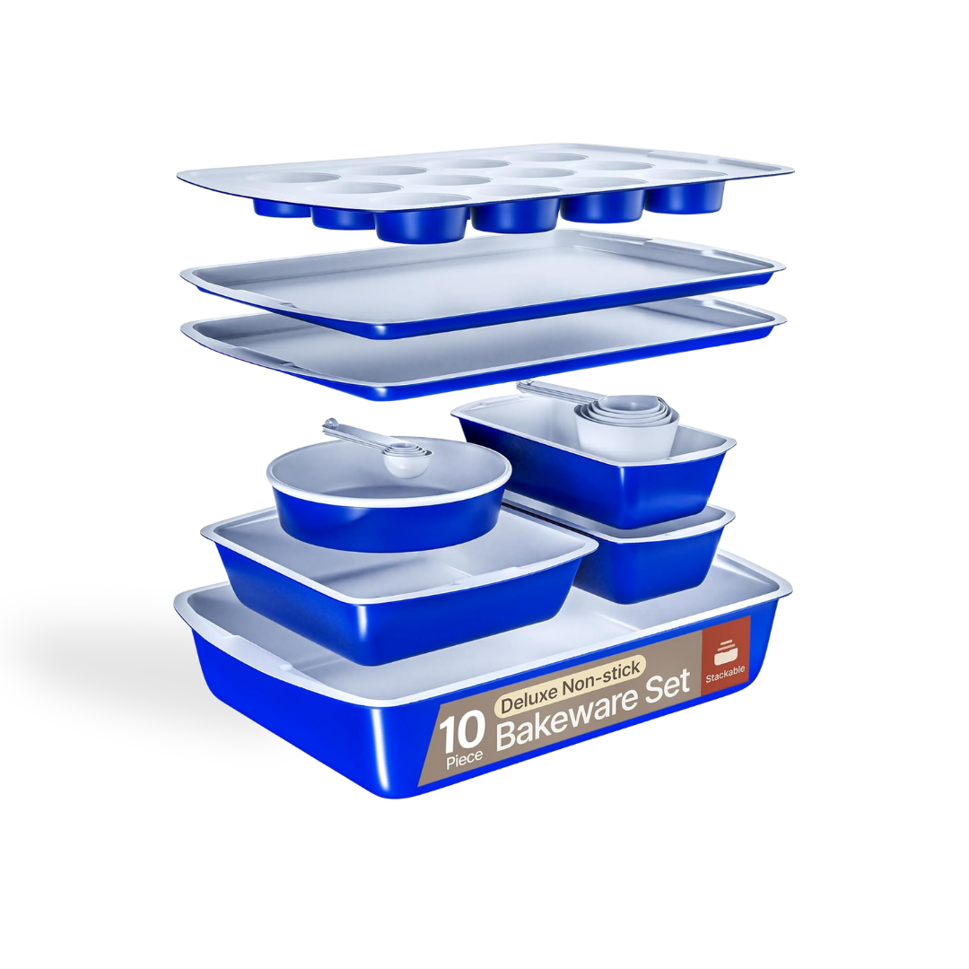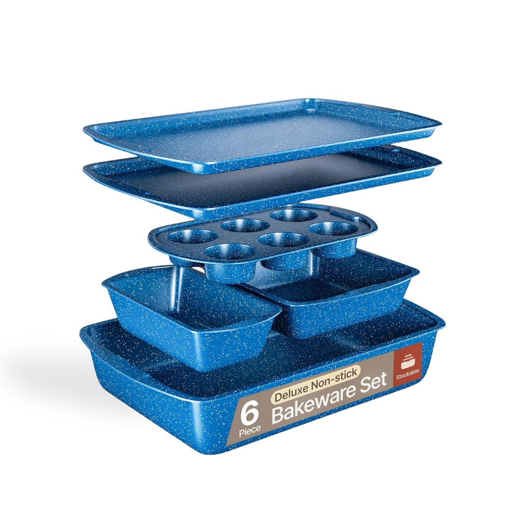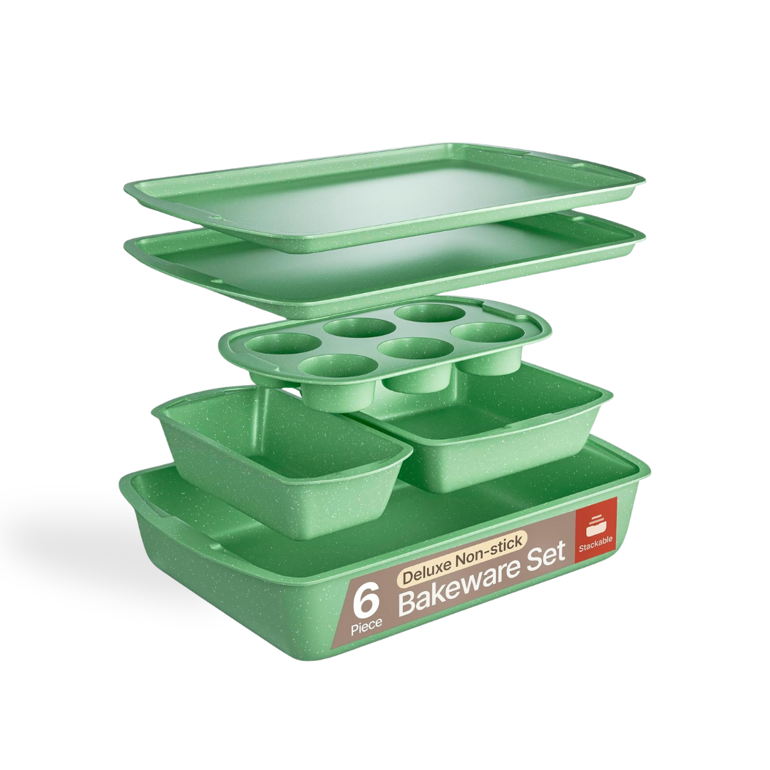Upgrade your kitchen with the Bakken 6-Piece Stackable Bakeware Set, the all-in-one solution for effortless home baking. Whether you're whipping up muffins, cookies, or a hearty loaf, this premium set gives you everything you need to get baking — and impress your guests.