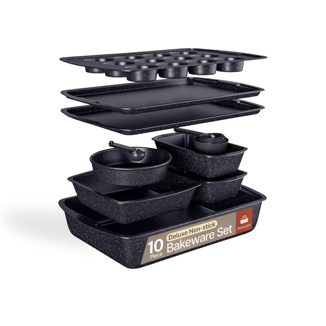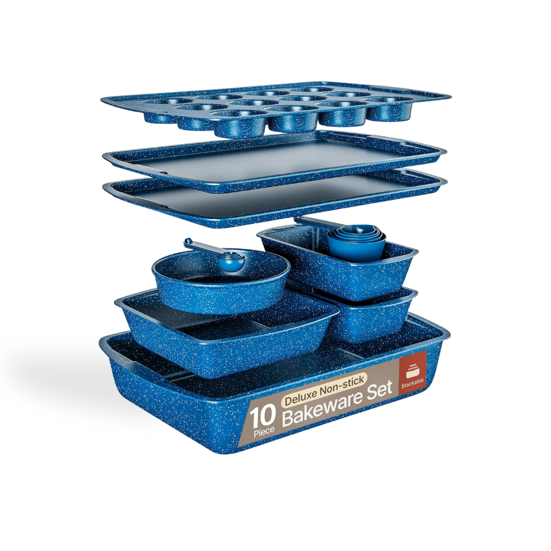 Say goodbye to messy cleanup and overcrowded cabinets. Buy Now and bring home the last bakeware set you’ll ever need.