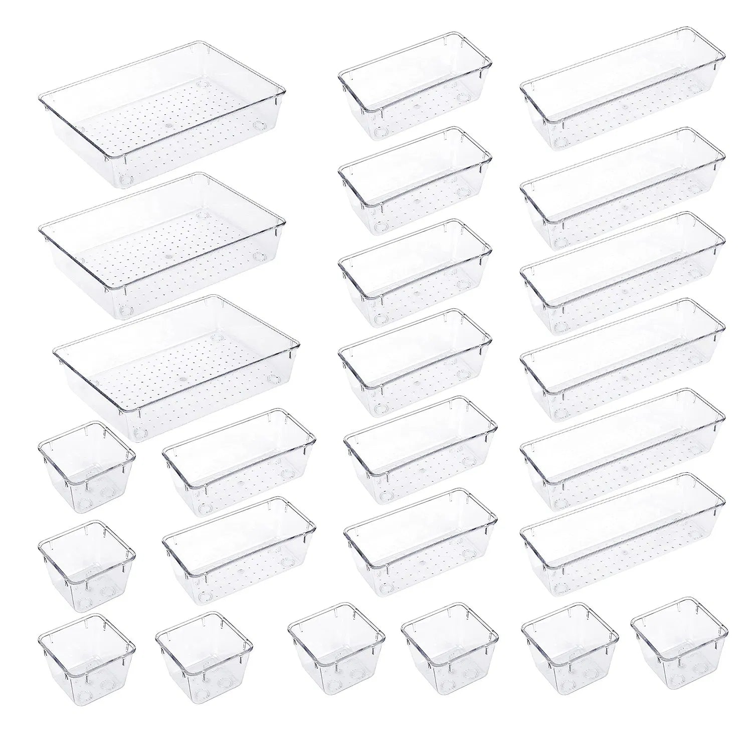 25-Piece Set Clear Plastic Drawer Organizer Set