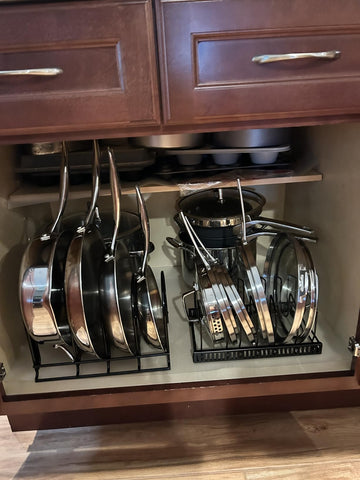 Multipurpose Storage: Organizes pots, pans, lids, cutting boards, platters, and more